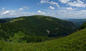 - The Higher Vosges or High Vosges[6] (Hautes Vosges), extending in the southern part of the range from Belfort to the river valley of the Bruche. The rounded summits of the Hautes Vosges are called ballons in French, literally "balloons".[7]