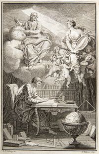 In the frontispiece to their translation of Newton, Émilie du Châtelet appears as Voltaire's muse, reflecting Newton's heavenly insights down to Voltaire.