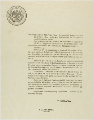 President of Mexico 19 February 1913 – 15 July 1914 |