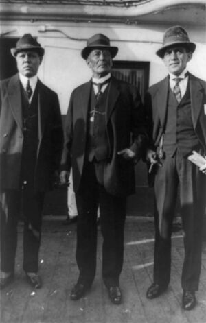 Huerta went into exile, first traveling to Kingston, Jamaica, aboard the German cruiser SMS Dresden.[62] From there he moved to the United Kingdom, then Spain, finally arriving in the United States in April 1915.