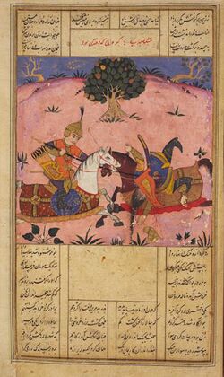 - ^ Yar-shater, Ehsan (1998), The Lion and the Throne: Stories from the Shahnameh of Ferdowsi, Korea: Mage Publishers (published 1997), p. 214, ISBN 0-934211-50-7