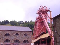 Industrial architecture tended to be functional, although some structures, such as the four-storey engine house at Cyfarthfa Ironworks (1836), were built to impress. Coal mining eventually became the dominant industry in Glamorgan and tall winding towers – originally made of timber or cast iron, later steel – became symbolic icons.[74]