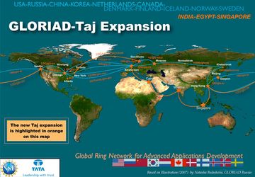 گلورياد GLORIAD (وهي الاختصار بالإنگليزية الشبكة الحلقية العالمية لتطوير التطبيقات المتقدمة Global Ring Network for Advanced Application Development) هي شبكة حاسوب عالية السرعة تـُستعمل لربط هيئات علمية في الولايات المتحدة وروسيا والصين والهند وهولندا وكوريا وكندا. وخارج المثلث الرابط بين الولايات المتحدة وروسيا والصين، فإن الشبكة، المسماة "تاج Taj" تجري على ألياف كابلات شركة تاتا للاتصالات التي تدير هذا الجزء. وكلمة "تاج" هي ماركة مسجلة لمجموعة تاتا تستخدما كإسم لسلسلة فنادق وغيرها.