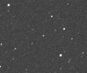 2014 MU69 من ضمن نجوم كويكبة الرامي، صورة التقطها المسبار نيو هواريزونز في أواخر 2018. زاد قدره الظاهري من مركبة الفضاء من 20 إلى 15.[22]
