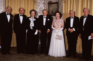 The flat became known as the No.10 Annexe, and lay above the much more comprehensive underground bunker used by Winston Churchill and now known as the Cabinet War Rooms.[61] To reassure the people that his government was functioning normally, he insisted on being seen entering and leaving Number 10 occasionally, and indeed, continued to use it for meetings and dinners despite being urged not to.[62] Harold Wilson, during his second ministry from 1974 to 1976, lived in his home in Lord North Street because Mary Wilson wanted "a proper home".[63]