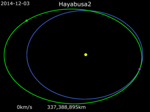 - ^ "Current status of the asteroid explorer, Hayabusa2, leading up to arrival at asteroid Ryugu in 2018" (PDF). منظمة استكشاف الفضاء اليابانية. Retrieved 18 June 2018.