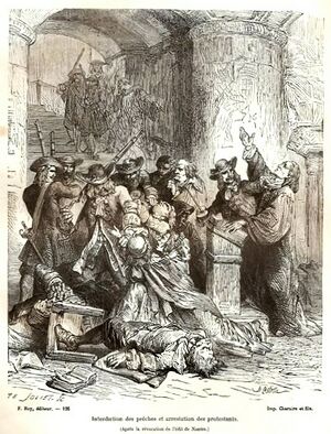 - October 22 - Louis XIV of France issues the Edict of Fontainebleau، which revokes the Edict of Nantes and declares Protestantism illegal, thereby depriving Huguenots of civil rights. Their Temple de Charenton-le-Pont is immediately demolished and many flee to England, Prussia and elsewhere.