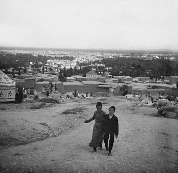 صورة لدمشق سنة 1912، من مقبرة الأكراد، على سفح جبل قاسيون. زركشة الخيمة إلى اليسار تشبه زركشة اليورت القزاخي.