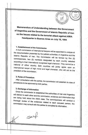 - Investigations Unit of the Office of the Attorney General, 25 October 2006, indictment for AMIA bombing, English translation