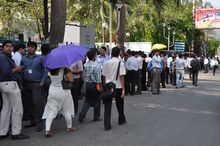 تسبب الزلزال في خروج الناس من منازلهم ومكاتبهم في بحيرة الملح، كلكتا، الهند.