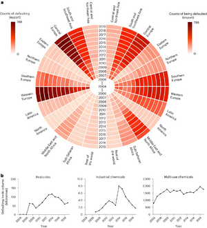 - News outlets report on a study (28 Dec 2022) and an interactive map by EWG using its results showing freshwater fish in the U.S.قالب:Globalize inline ubiquitously contain high levels of harmful PFAS, with a single serving typically significantly increasing the blood PFOS level.[55][56]