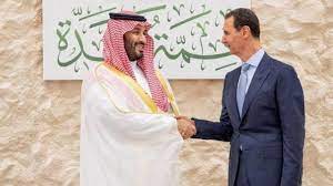 - أكد ولي العهد السعودي الأمير محمد بن سلمان، أن المملكة تدعم استئناف مشاركة وفود الحكومة السورية في اجتماعات الجامعة العربية، ومخرجات قمة جدة في هذا الإطار وخلال افتتاح أعمال السنة الرابعة من الدورة الثامنة لمجلس الشورى، نيابة عن الملك سلمان بن عبد العزيز، قال ولي العهد: "نأمل أن يسهم ذلك في دعم واستقرار الجمهورية العربية السورية الشقيقة ووحدة أراضيها، وإيجاد حل عاجل للأزمة السورية يسهم في العودة الطوعية الآمنة للاجئين السوريين إلى بلادهم".
