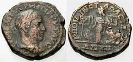 Sestertius minted in 247 by Philip the Arab to celebrate Dacia province and its legions, V Macedonica and XIII Gemina. Note the eagle and the lion, V's and XIII's symbols, in the reverse.