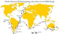 - 1836 - إتشإمإس Beagle، بقيادة روبرت فتسروي مع تشارلز داروِن على متنها، بعد تجريدتهم في أمريكا الجنوبية يعودون إلى إنگلترة. عمل داروِن سيرتكز على ما وجده في تلك الرحلة.