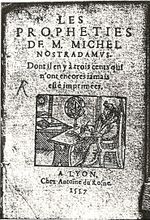 - 1555 - أول طبعة من Les Propheties de M. Michel Nostradamus , نبوءات نوستراداموس، يـُنشر منها أول 353 سطر.