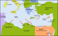 - 1912 - الحرب الإيطالية التركية: إيطاليا تستولي على رودس، وكانت أول جزيرة في دوديكانيز تسقط في يد الإيطاليين. وقد ظلت في يدهم حتى نهاية الحرب العالمية الثانية.