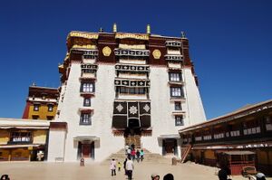The initial phase of construction continued until 1694,[36] some twelve years after the 5th Dalai Lama's death, which was kept secret from the general public for that length of time.[37] The Potrang Marpo – or Red Palace – was added between 1690 and 1694.[36]