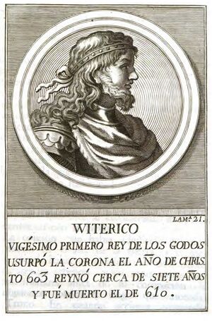 - الربيع - Witteric، counting on the support of the nobles، attacks the royal palace in Toledo، and overthrows King Liuva II. He cuts off his right hand, and has him executed. Witteric يصبح الملك الجديد على القوط الغربيين.[1]