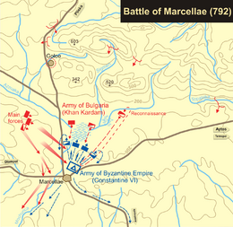 - Battle of Marcellae: Constantine VI leads a Byzantine expeditionary force into northern Thrace. At the border castle of Marcellae، near the modern town of Karnobat (Bulgaria), the Bulgarians under Kardam defeat the Byzantines.