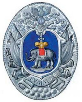 In an official document that Gannibal submitted in 1742 to Empress Elizabeth, while petitioning for the rank of nobility and a coat of arms, he asked for the right to use a family crest emblazoned with an elephant and the mysterious word "FVMMO", which may mean "homeland" in the Kotoko language. In his book, Gannibal: The Moor of Petersburg, Hugh Barnes writes of meeting with the sultan of Logone-Birni, who gave him the same translation of the word.[3] However, Frances Somers-Cocks, author of The Moor of St Petersburg: In the Footsteps of a Black Russian, met the same sultan and received a different translation for FVMMO. She also suggested that FVMMO stands for the Latin expression Fortuna Vitam Meam Mutavit Omnino which means "Fortune has changed my life entirely."[3]