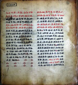 The Ge'ez script on a 15th-century Ethiopian Coptic prayer book.