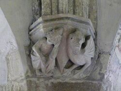 Acedia depicted as a sleeping man and a bat in the Goat Church in Sopron, Hungary