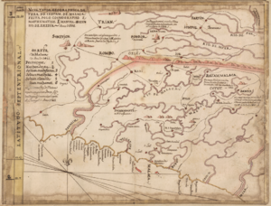 The Acehnese landed on October 13 south of Malacca and dealt severe casualties to the Portuguese who attempted a sortie. Thereafter they began attacking the fortress with incendiary projectiles, causing several fires but a sudden storm put out the fires and scattered the fleet, and the assault was called off. The Aceh commander then decided to establish a naval base by the Muar River and force the city to surrender through a naval blockade instead, but they were challenged by a Portuguese fleet of a carrack, a galleon, and eight half-galleys under the command of Tristão Vaz da Veiga.[34] Despite having Turkish gunners and cannon, the Acehnese artillery was not overly effective.[34] Once their flagship captured by the Portuguese, the remainder of the Aceh fleet scattered.[34] The Portuguese suffered ten dead.[34]