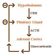 يقوم بتنظيم هرمون الكورتيزول غدة تقع بالمخ تسمى غدة ما تحت المهاد ( الهيبوثالامس ) Hypothalamus و غدة أخرى تسمى الغدة النخامية Pituitary gland . تقوم غدة ما تحت المهاد بإرسال إشارات للغدة النخامية في صورة هرمونات تجعلها تقوم بإفراز هرمونات تنظم النمو، وظيفة الغدة الدرقية ، و وظيفة الغدة الكظرية، و كذلك الهرمونات الجنسية مثل الإستروجين و التستوستيرون.