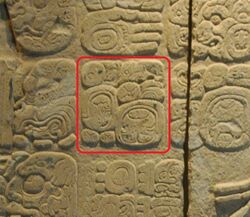 - ^ The ruler's name, when transcribed is a-ku-AL MOʼNA꞉B, translated "Turtle Macaw Lake?".