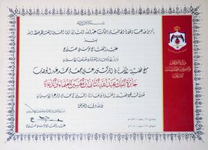 - وسام الاستقلال من الدرجة الأولى من الملك عبد الله الثاني عاهل الأردن.[8]