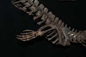 The superfamily Alligatoroidea is thought to have split from the crocodile-gharial lineage in the late Cretaceous, about 80 million years ago, but possibly as early as 100 million years ago based on molecular phylogenetics.[1][2][3] Leidyosuchus of Alberta is the earliest known genus. Fossil alligatoroids have been found throughout Eurasia as land bridges across both the North Atlantic and the Bering Strait have connected North America to Eurasia during the Cretaceous, Paleogene, and Neogene periods. Alligators and caimans split in North America during the early Tertiary or late Cretaceous (about 53 million[2] to about 65 million years ago[1]) and the latter reached South America by the Paleogene, before the closure of the Isthmus of Panama during the Neogene period. The Chinese alligator split from the American alligator about 33 million years ago[2] and likely descended from a lineage that crossed the Bering land bridge during the Neogene. The modern American alligator is well represented in the fossil record of the Pleistocene.[4] The alligator's full mitochondrial genome was sequenced in the 1990s.[5] The full genome, published in 2014, suggests that the alligator evolved much more slowly than mammals and birds.[6]