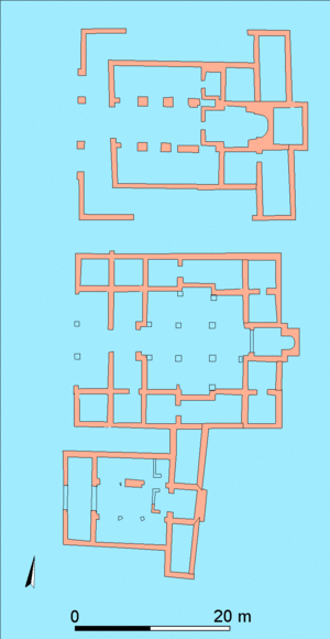 مجمع كنيسة "التل-ب"، سوبا، يشمل، من أعلى لأسفل: "الكنيسة أ"، "الكنيسة ب"، "الكنيسة ج".