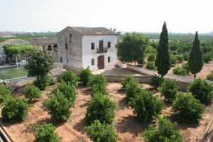 An alquería is a small rural community formed by a few houses. The inhabitants were usually one or more families who made a living exploiting the surrounding lands, including farming and rearing livestock.[1] The word alquería can be traced back to the 15th century.[3] In the Horta of Valencia, where traditionally they have always been more plentiful, it is the corresponding dwelling to an important agricultural exploitation, usually on irrigated lands, unlike the hut, typical of the smallholding, and the masia, of cereal and livestock character.[3] By the end of the Middle Ages this Andalusian farm fortress evolved into more modern forms, with a small palace-like look, inhabited by rural lords.[3]