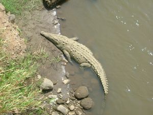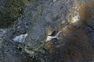Like any other large crocodilian, the American crocodile is potentially dangerous to humans, though it tends not to be as aggressive as some other species.[7]