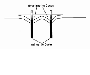 • المخروط الخرساني: بعد الوصول إلى قدرة التحمل يتشكل شكل مخروطي. يحكم القصور نمو الصدع في الخرسانة.[15]هذا النوع من القصور نموذجي في اختبار الانسحاب.[16][17]