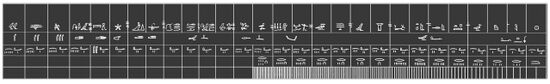 المسألة 80 في بردية أحمس الرياضية: بالنسبة للأواني (ذبع) المستخدمة في قياس الحبوب من قبل موظفي مخزن الحبوب: يتم إجراء العملية في هينو، 1 حقعت يعطي 10؛ 1⁄2 تعطي 5؛ 1⁄4 يعطي 2+1⁄2، إلخ.[1][8]