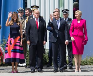 Duda and his wife Agata Kornhauser-Duda with U.S. President Donald Trump and Melania Trump in Warsaw