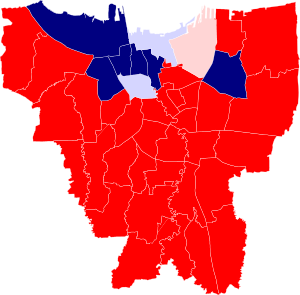 نتائج انتخابات حكام جاكرتا 2017، الدوائر الانتخابية التي فاز فيها أنيس موضحة باللون الأحمر.
