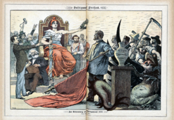 “Celebration of freedom. In memory of the 1893 Reichstag elections", drawing by Hans Gabriel Jentzsch [de] , in "Der Wahre Jacob" [de] , no. 183, 28 July 1893