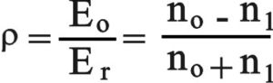 لدى انتقال موجة ضوئية من وسط قرينته n0 إلى وسط آخر قرينتهn1، فإن الموجة، نتيجة لاستمرار الحقل الكهرمغنطيسي، تنعكس بمعامل عاكسية للسعة يعطى بعلاقة فرينل Fresnel:( شكل 3) وتكون نسبة الطاقة المنعكسة أو اختصاراً العاكسية ممثلة ب (شكل 4)