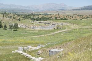 Outside the late period defence walls and opposite the Great Basilica, a small valley can be discerned. It has been recognized as a stadium only recently. The building blocks have all gone but traces of a U-shaped stadium c. 190x30 m for athletic games and competitions can be seen.
