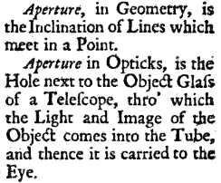Definitions of Aperture in the 1707 Glossographia Anglicana Nova[1]