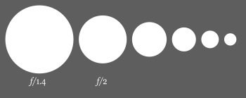 Diagram of decreasing aperture sizes (increasing f-numbers) for "full stop" increments (factor of two aperture area per stop)