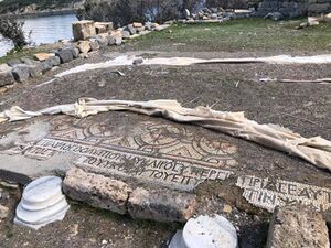 There are ruins of a necropolis, a cistern, city walls and floor mosaics of a 4th-century church named St.Panteleon (The church was a temple prior to Christianity).[3] In 1987, Ludwig Budde from Germany published his book St.Pantaleon von Aphrodisias in Kılikien about the church. But most of the mosaics are not unearthed yet.[4]