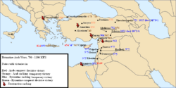 الصراع الرئيسي انتهى بحصار القسطنطينية عام 718 ، وعلى الرغم من استمرار النزاعات في وقت لاحق في القرن الحادى عشر الميلادى ، الفتوحات العربية بدأت تتأخر. والمحاولات العربية للإستيلاء على الأناضول قد فشلت، ولكن في نهاية المطاف قد أنجزت بواسطة السلاجقة الترك.