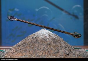 The unveiling ceremony of Arash Kamangir's golden arrow (peace, romantic defense) was held by the Nowruz World Institute on the occasion of World Peace Day (20 September 2020).[3][4][5] Arash Kamangir's symbolic look at an arrow adorned with gold and jewelry is in fact an artistic ideal in the form of depicting myths that are all peaceful.[6]