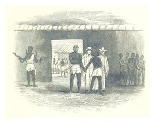 The slaves in Africa, I suppose, are nearly in the proportion of three to one to the freemen. They claim no reward for their services except food and clothing, and are treated with kindness or severity, according to the good or bad disposition of their masters ... The slaves which are thus brought from the interior may be divided into two distinct classes—first, such as were slaves from their birth, having been born of enslaved mothers; secondly, such as were born free, but who afterwards, by whatever means, became slaves. Those of the first description are by far the most numerous ...[200]