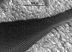 - ^ أ ب Urso, Anna C.; Fenton, Lori K.; Banks, Maria E.; Chojnacki, Matthew (2019-05-01). "Boundary condition controls on the high-sand-flux regions of Mars". Geology. 47 (5): 427–430. Bibcode:2019Geo....47..427C. doi:10.1130/G45793.1. ISSN 0091-7613. PMC 7241575. PMID 32440031.