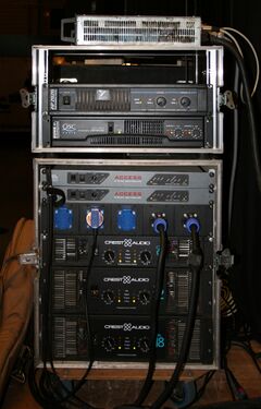 Important applications include public address systems, theatrical and concert sound reinforcement systems, and domestic systems such as a stereo or home-theatre system. Instrument amplifiers including guitar amplifiers and electric keyboard amplifiers also use audio power amplifiers. In some cases, the power amplifier for an instrument amplifier is integrated into a single amplifier "head" which contains a preamplifier, tone controls, and electronic effects. These components may be mounted in a wooden speaker cabinet to create a "combo amplifier". Musicians with unique performance needs and/or a need for very powerful amplification may create a custom setup with separate rackmount preamplifiers, equalizers, and a power amplifier mounted in a 19" road case.