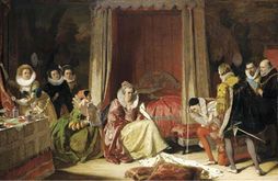 Egg's early paintings were generally illustrations of literary subjects. Like other members of The Clique, he saw himself as a follower of Hogarth. His interest in Hogarthian moral themes is evidenced in his paired paintings The Life and Death of Buckingham, depicting the dissolute life and sordid death of the Restoration rake George Villiers, 2nd Duke of Buckingham. Yet his paintings often took a humorous look at their subjects, as in his Queen Elizabeth Discovers she is no longer Young (1848).